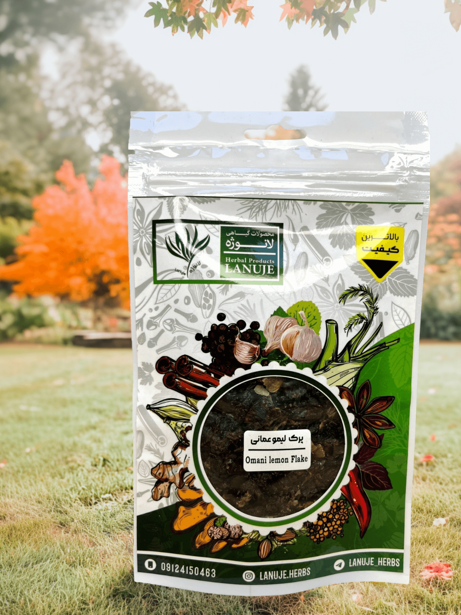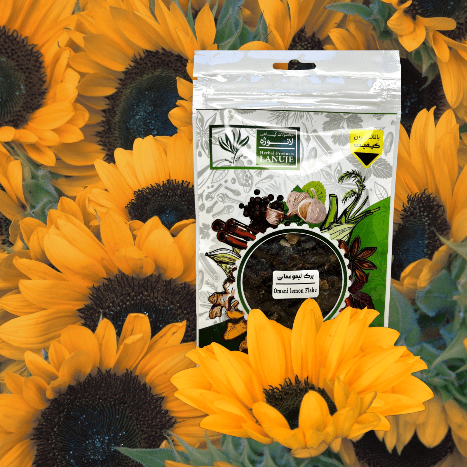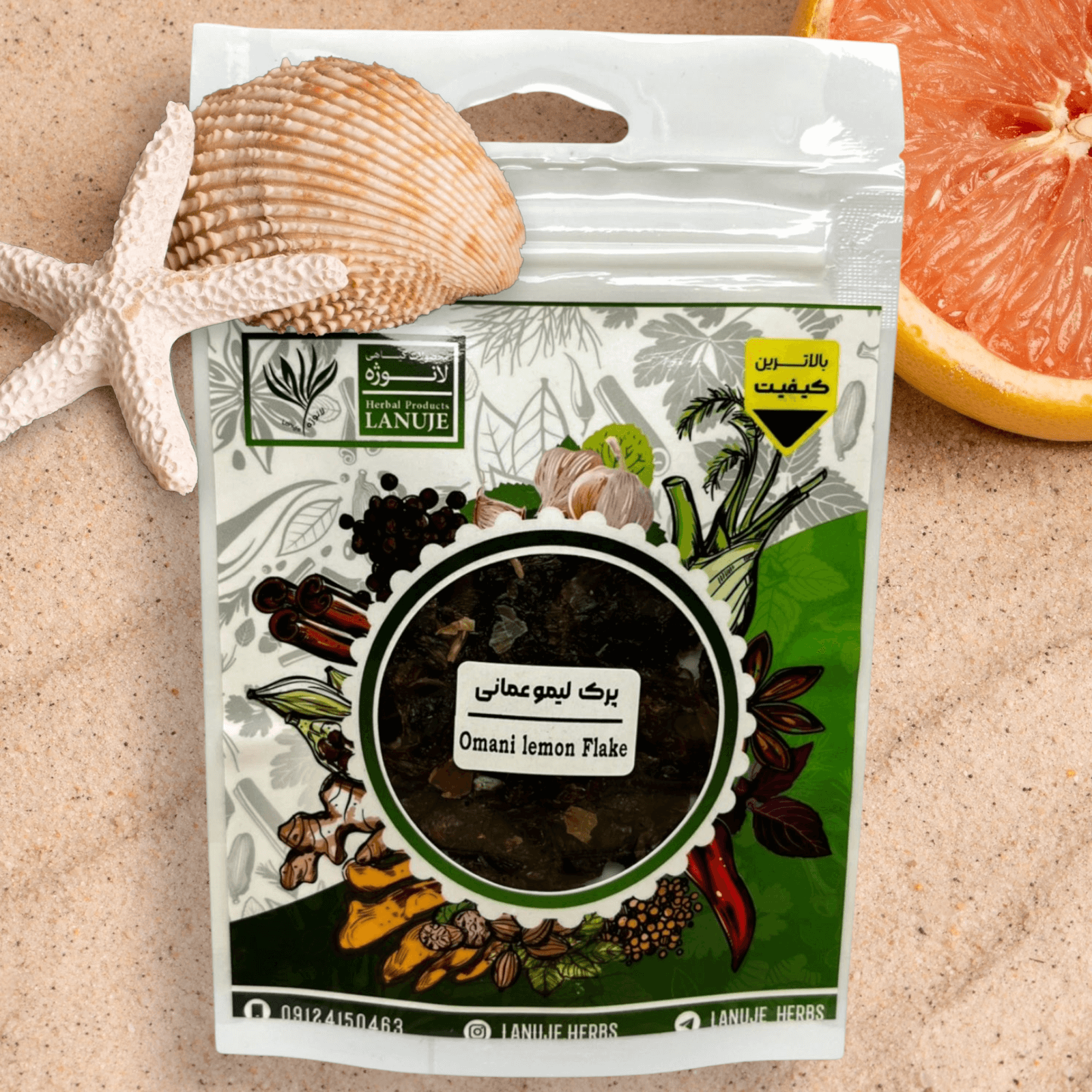 پرک لیمو عمانی ممتاز لانوژه (Dried Omani Lime Flakes) در پاکت زیپ‌دار ۱۰ گرمی با ابعاد ۱۷×۲×۱۱ سانتی‌متر