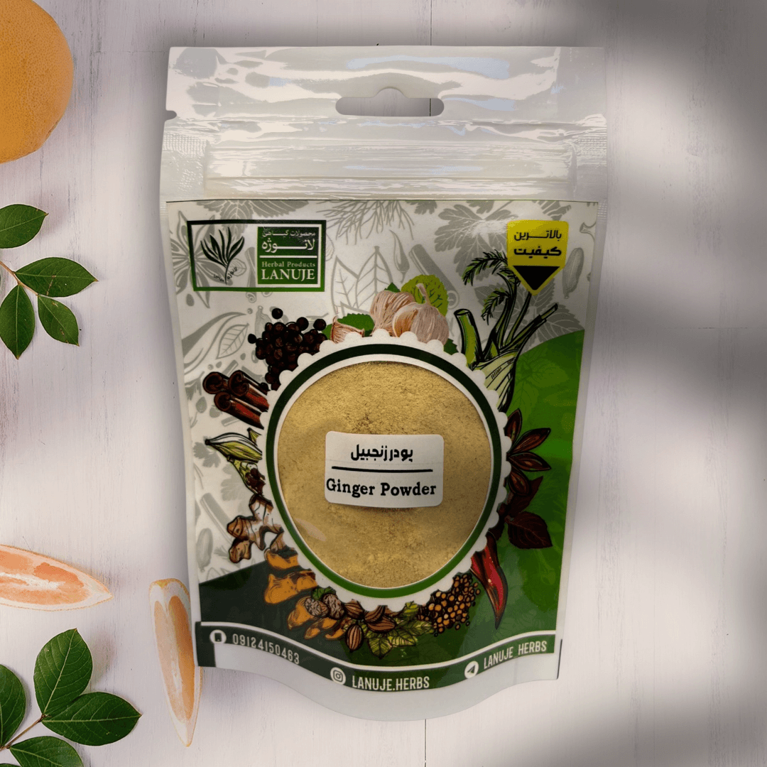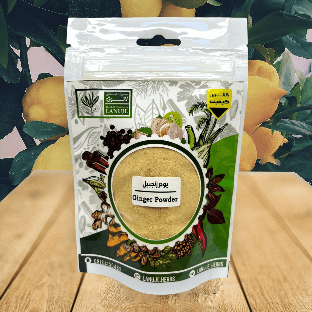 پودر زنجبیل خالص لانوژه، بدون هیچگونه مواد افزودنی شیمیایی، رنگ مصنوعی یا نگهدارنده عرضه میگردد.